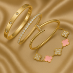 • Trinity & Clover Bracelet: A delicate and adjustable bracelet (16+5 cm) with charming details, available in gold or silver.