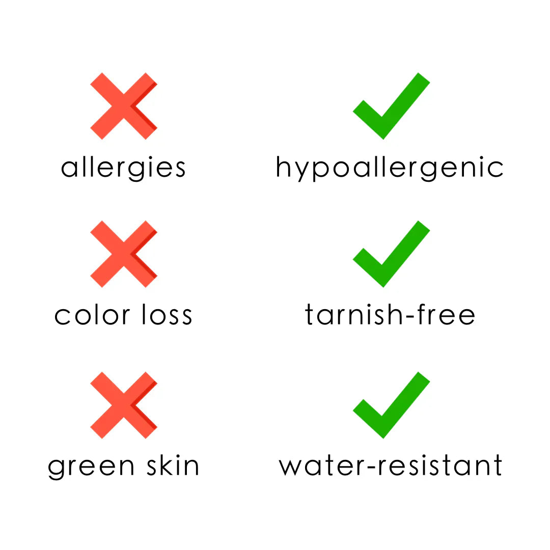Sensitive skin approved. No nickel, no irritation, just comfort.
